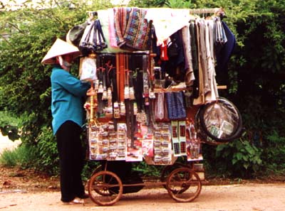 A street vendor with her cart.
