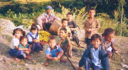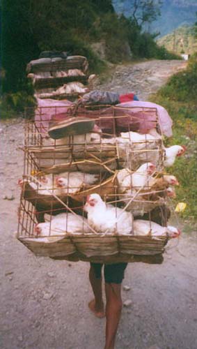 Everything brought in to the mountain villages has to be ported in. Here a couple of young