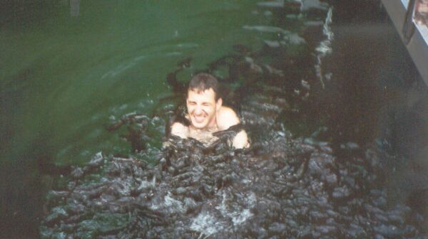 May 7 - Near Langkawi, Malaysia. That's a lot of catfish. You can see one is sitting on my right shoulder flapping around.