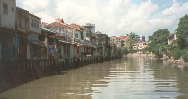 April 21 - Melaka, Malaysia. The houses along the river that runs through the city.