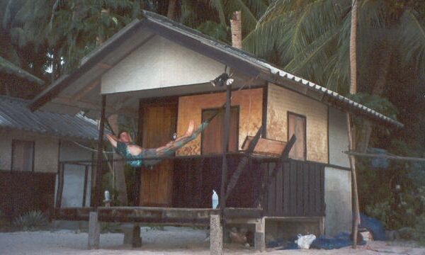 May 25 - Ko Pha Ngan, Thailand. Just hanging out in front of my bungalow, listening to the waves crashing on the beach. This place cost me 150 baht per night - about US$3.75 or Cdn$6.