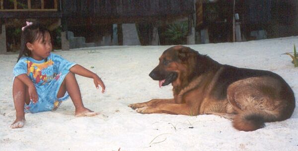 May 30 - Ko Pha Ngan, Thailand. This little girl lived next to where I was staying on the beach. She's not happy with one of our guarddogs, Rex, who, along with his partner in crime, Ollie, almost ripped another dog on the beach to shreds.