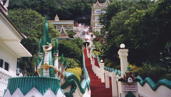June 11 - Kanchanaburi - This temple has a staircase going up to it that leads into the mouth of a dragon, and then continues to snake it's way through the dragon's body.