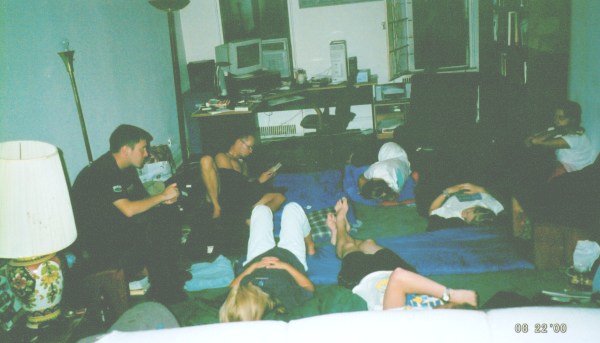 Our sleeping quarters, Roz's livingroom. Just like on the bus, we were all packed together.