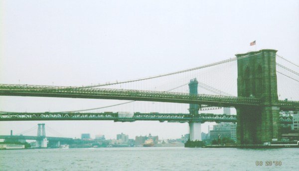 (Nearest to Farthest) The Brooklyn, Manhattan, and Williamsburg bridges (remember BMW).