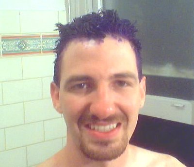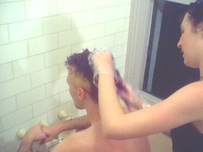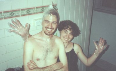 And so, with the help of Megan, whom I'd met on my August 2000 trip across the U.S., we bleached my hair, wrapping my head in plastic wrap so that I wouldn't make a mess everywhere I walked.