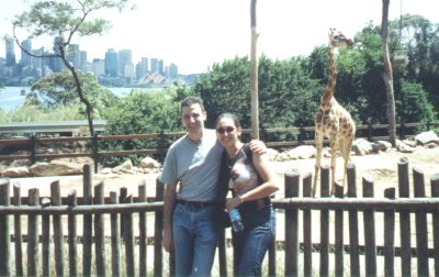 Me, Maria, a Giraffe, and the city in the background. A zoo with a view.