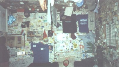 William Creek consists of a campground and a bar, which fit our requirements well. The walls and ceiling of the bar were covered in business cards, ID cards, and articles of clothing from past visitors.