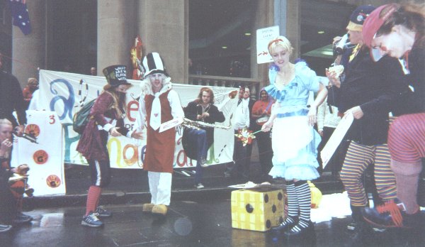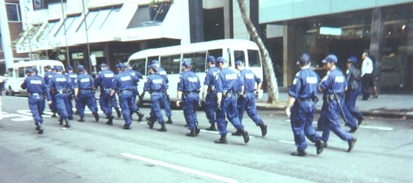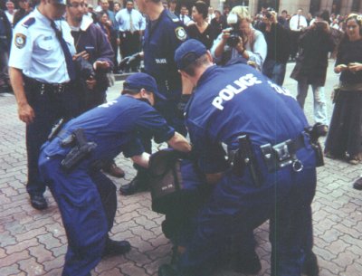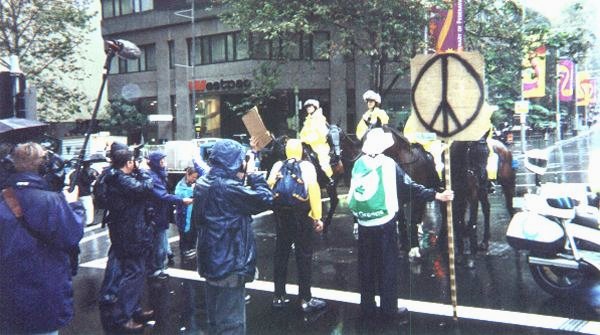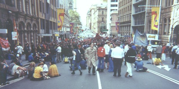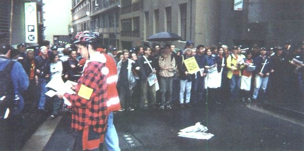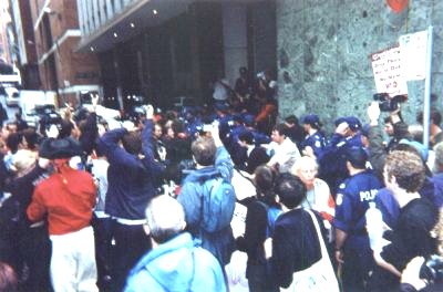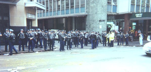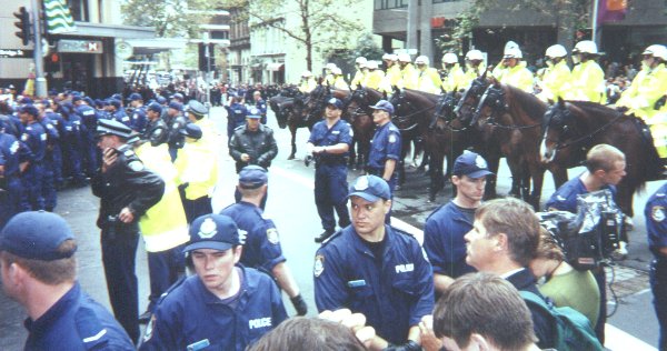 The protest started at some horrible time - like 7 AM or something. Their plan was to blockade the Sydney Stock Exchange building. In the beginning, it was a small group of protesters blocking the front entrance of the building. This had no effect on the operation of the building - the police had already arranged to allow the protesters to block that entrance.